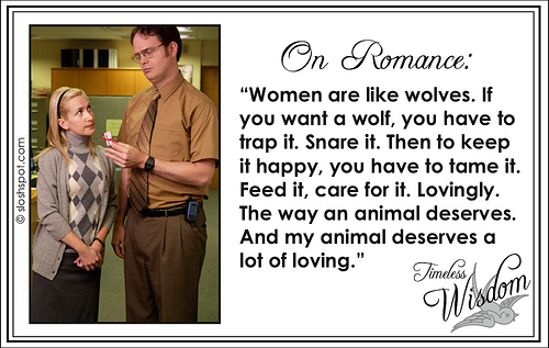 Women are flexible. Cut off their angel’s wings, they’ll fly with a broom. Dwight knows how to keep his tigress happy lest she scratch his eyeballs out.